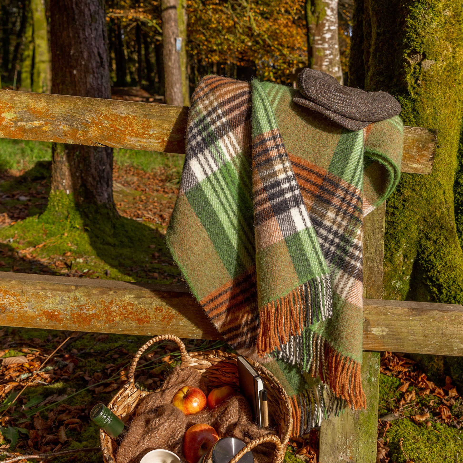 Descubra el encanto de la campiña irlandesa con esta gran manta de picnic, confeccionada 100% lana pura. Duradero, robusto y diseñado para durar generaciones. Los tonos cálidos de verde, naranja, carbón y crema reflejan el paisaje irlandés y hacen que esta manta sea ideal para días de playa, picnics o simplemente para estar al aire libre. Sin plástico y producido en Europa. Exactamente lo que esperarías de Blankies.