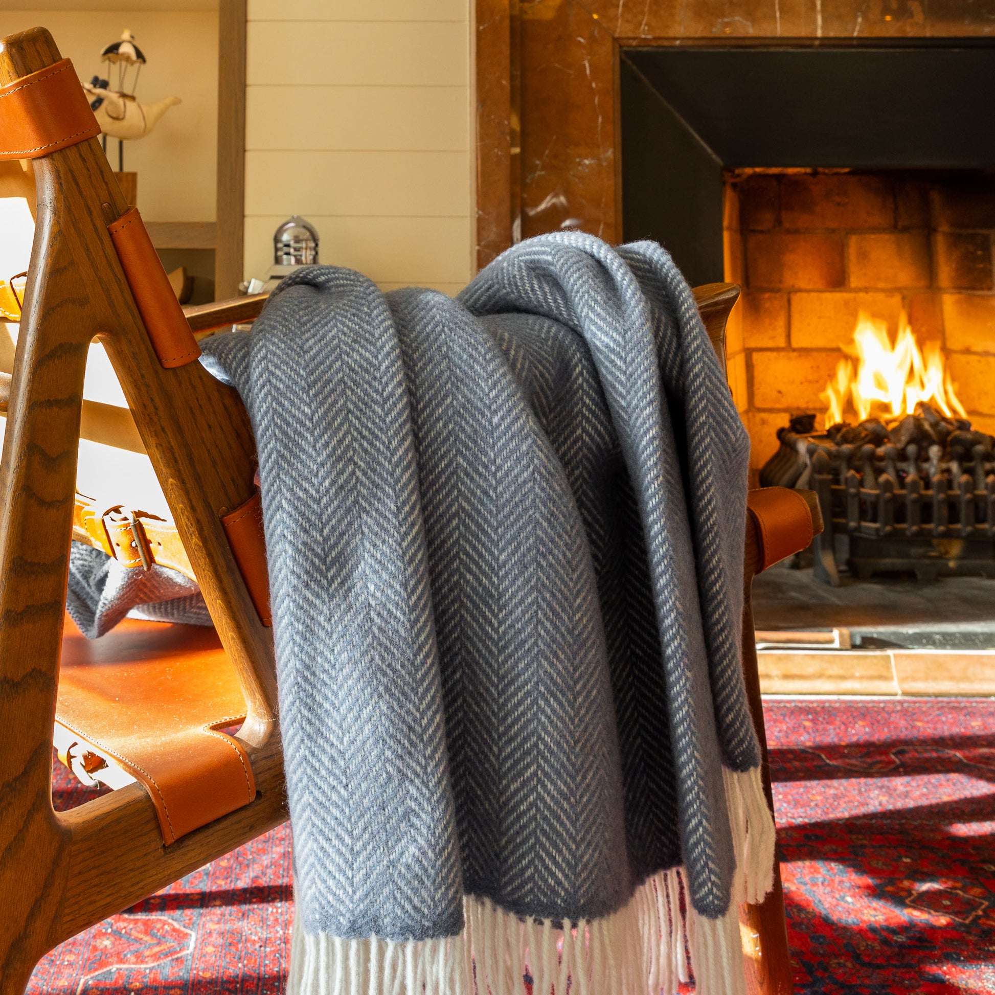 Esta atemporal manta de espiga está tejida expertamente por John Hanly en Irlanda. Fabricado con 95% de lana merino y 5% de cachemira para máxima suavidad y lujo. Completamente libre de plástico y producido dentro de la UE, teniendo en cuenta la sostenibilidad y la calidad que perdura durante generaciones.